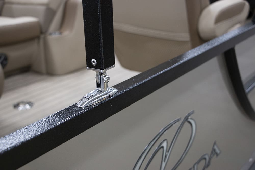 Designers at Veranda Luxury Pontoons know that good things come in pairs, as evident in the Fish Series F2Plus2. Anglers will appreciate two fishing seats in the rear and two fishing seats outside the fence on the bow, and the two front chaise lounges when not fishing. Whether you are a serious fisherman or not, the Veranda Fish Series F2Plus2 is a win-win option loaded with amenities for the entire family. Fishing, cruising, or watching the sunset, we’ve got you covered!