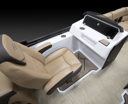 You and your co-pilot will experience a double dose of pleasure when you sit on the “High Rise” hydraulic helm chairs of the all-new Vertex Dual Console Rear Chaise (DCRC) Series. Great things come in pairs, like dual forward-facing chaise lounges, dual consoles at midship with a glove box for storing your vitals, and dual rear-facing chaise lounges in the aft. The Wet Sounds manufacturer-tuned Bluetooth 360-degree audio solution provides dialed-in entertainment and 360-degree music coverage to keep you rocking whether you are on the deck, dock, or shore. Every Veranda we assemble comes standard with industry-leading 0.100-gauge round tubes because it is the most durable shape aluminum can be formed into. Our exclusive partnership with Yamaha perfectly complements the innovative log design and Patented All-Aluminum All-Welded Interlocking Deck System it powers. Choose the all-new Vertex DCRC Series if you are ready to embrace the most durable foundation in the industry and a lifetime of trouble-free fun!