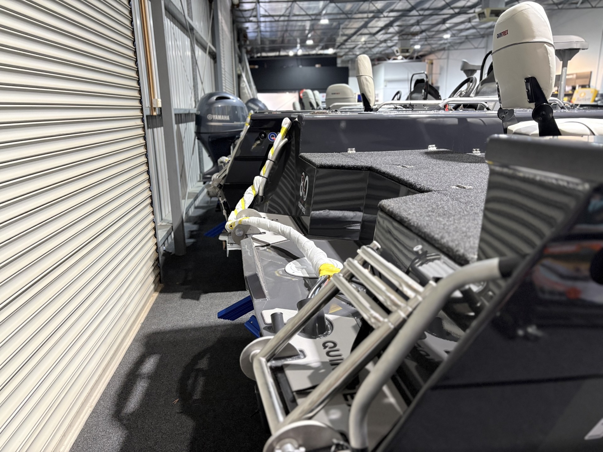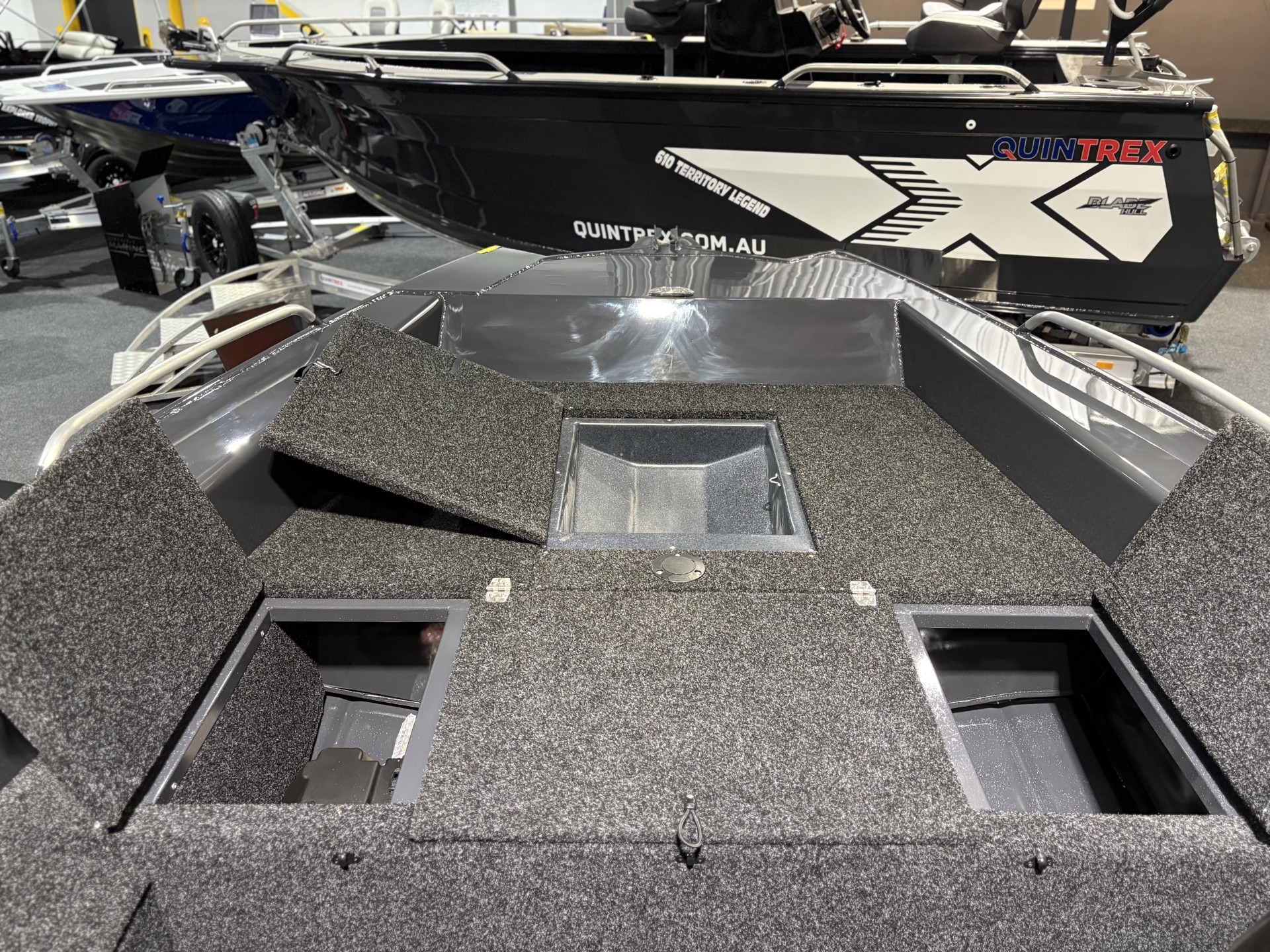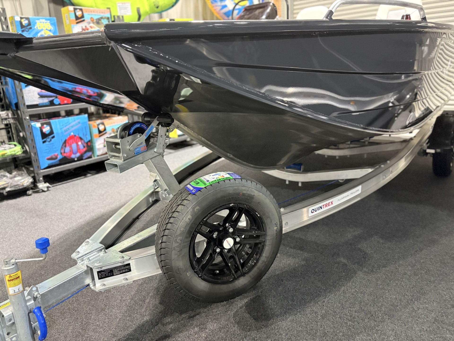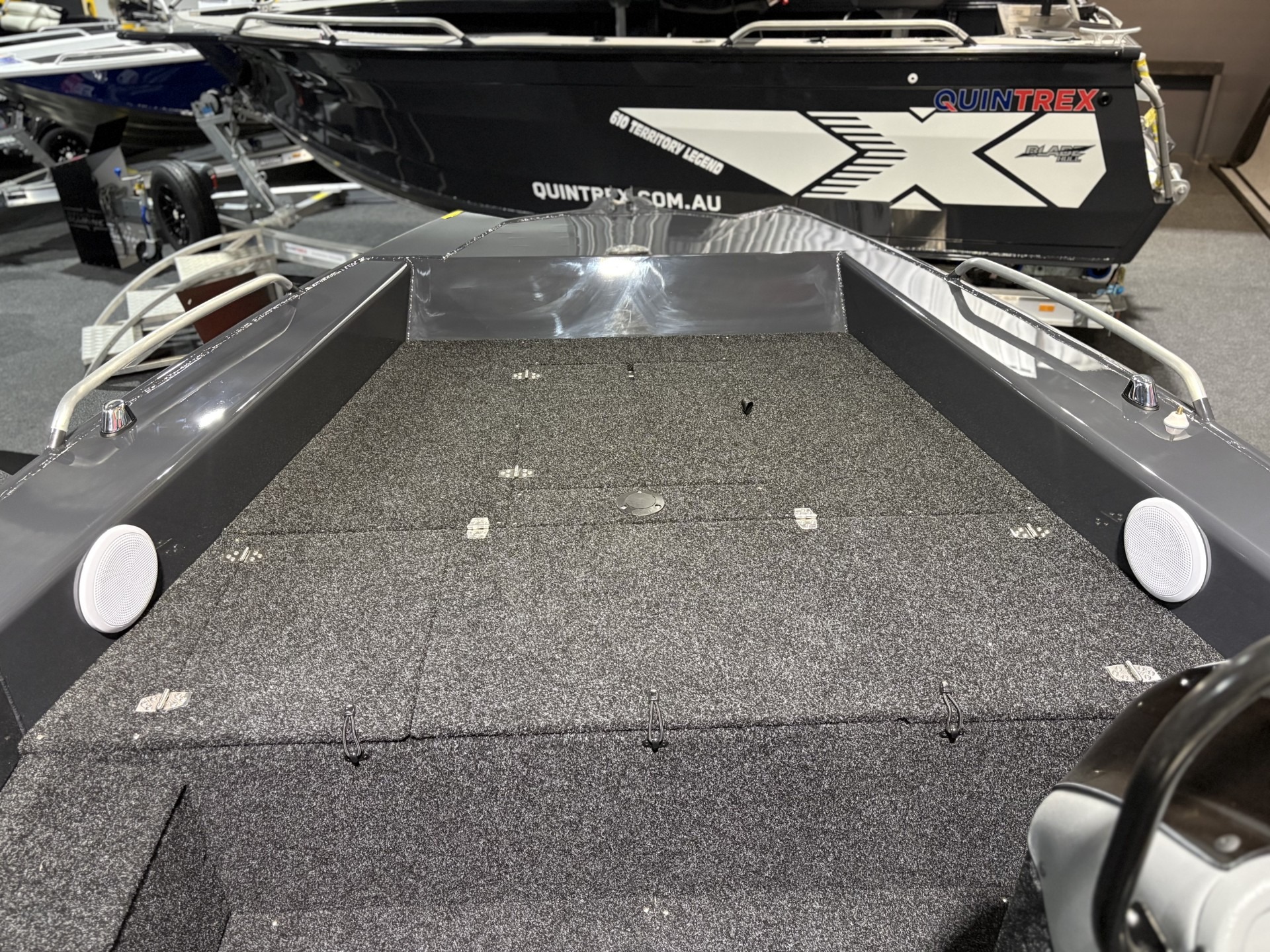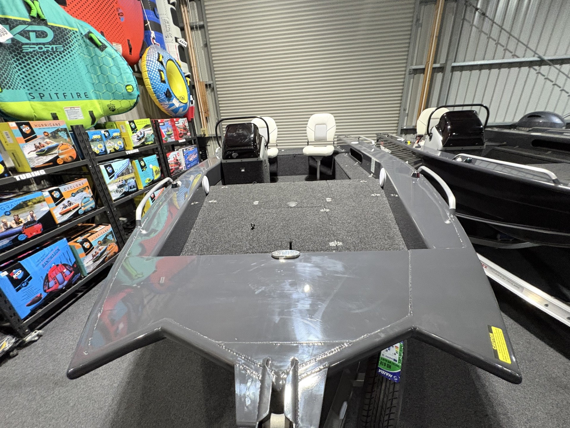 QUINTREX 481 HORNET PRO VORTEX GREY YAMAHA F90LB TELWATER TA129813SB TRAILER 80L UNDERFLOOR FUEL TANK MARINE RADIO DELUXE ROD LOCKER LARGE FRONT CASTING DECK REAR CASTING DECK ROD HOLDERS FUSION STEREO AND SPEAKERS LIVE BAIT TANK REAR LADDER TIE DOWNS BATTERY AND BATTERY BOX VIC REGO