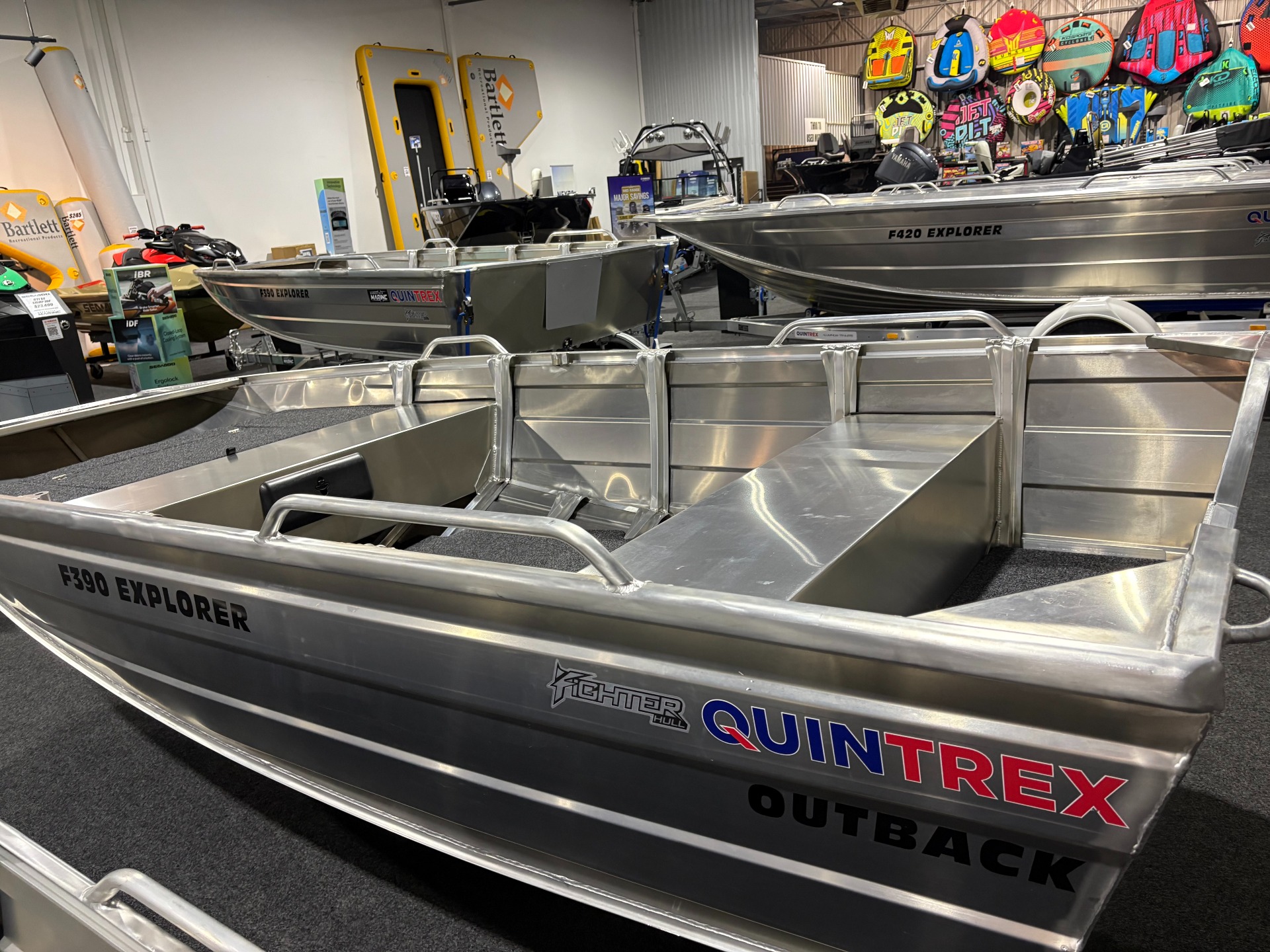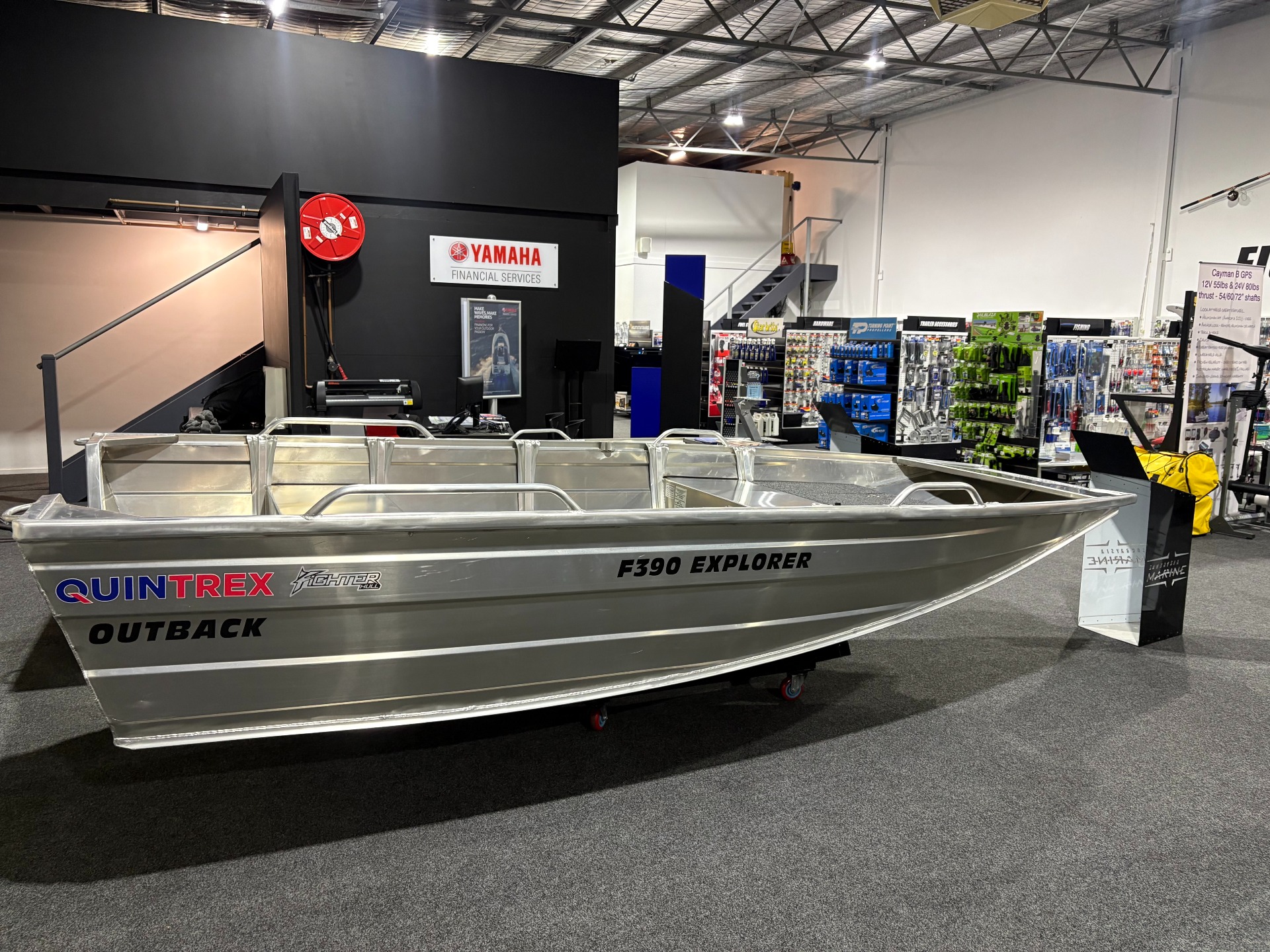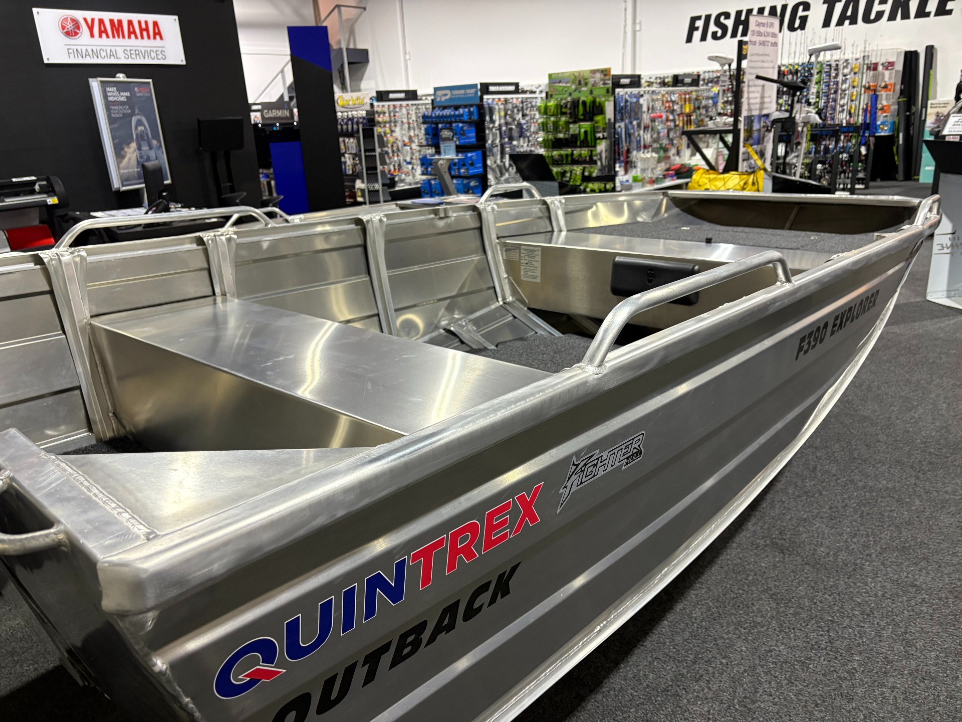 QUINTREX F390 OUTBACK EXPLORER YAMAHA F25LMHC DUNBIER TRAILER FRONT CASTING DECK FRONT STORAGE PART FLOOR FUEL TANK RACK GLOVE BOX 2X BENCH SEATS SAFTEY GEAR FUEL TANK AND LINE MOTOR SUPPORT AND TIE DOWNS VIC REGO