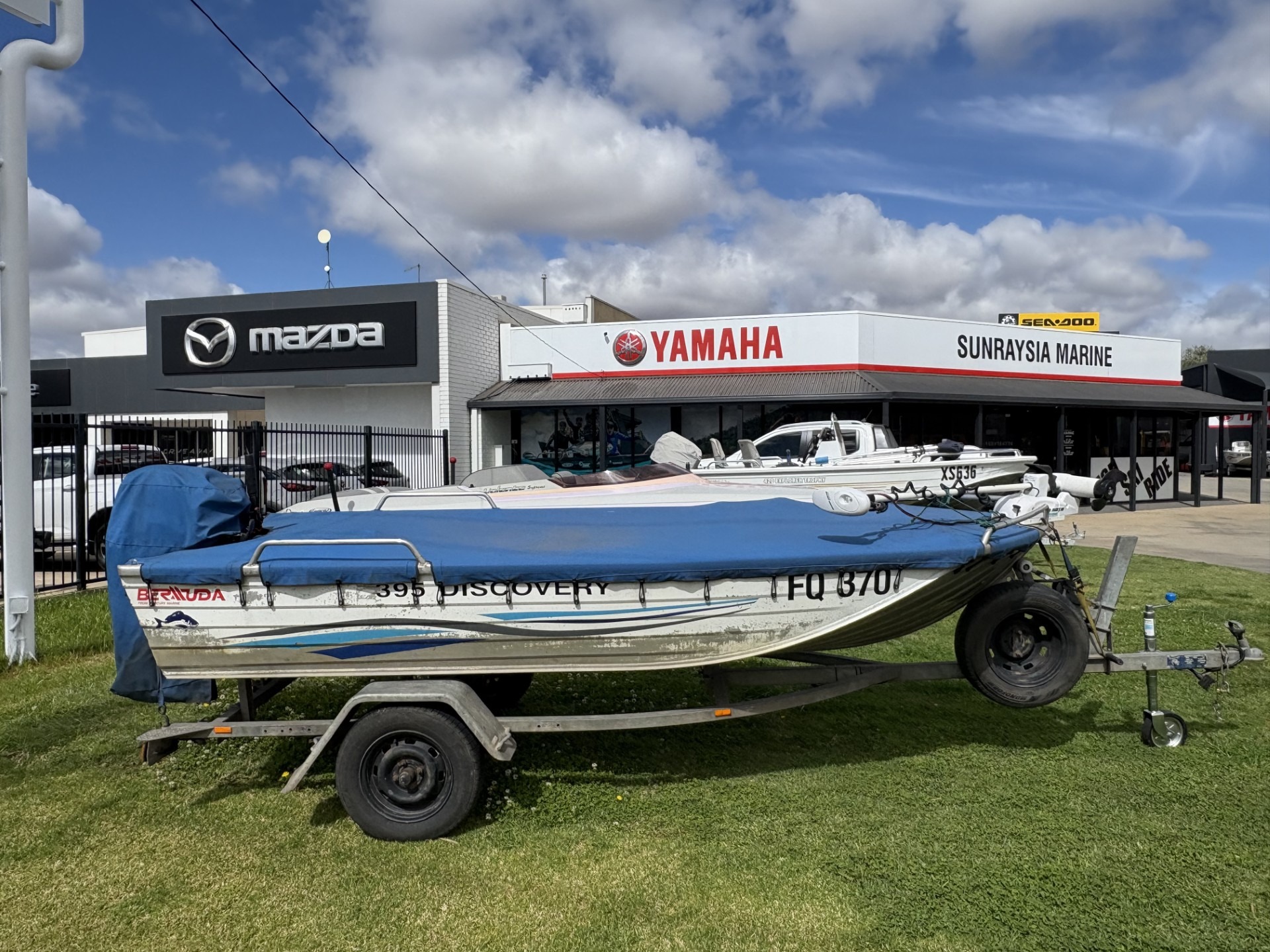 1999 Bermuda 395 Discovery 20HP SUZUKI 4 STROKE LOW HOURS CUSTOM BOAT TRAVEL COVER CUSTOM ENGINE TRAVEL COVER CUSTOM FLOORING 2X SEATS SAFETY GEAR GARMIN FISH FINDER MINN KOTA ELECTRIC MOTOR ROD HOLDERS SPARE WHEEL CARRIER & SPARE WHEEL