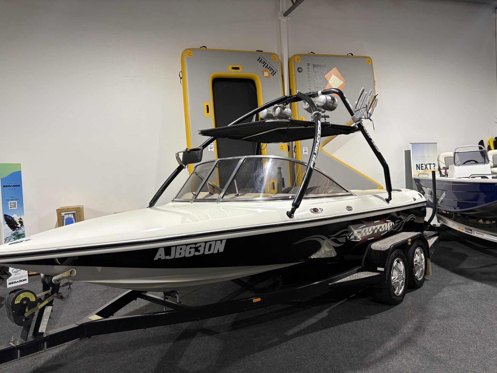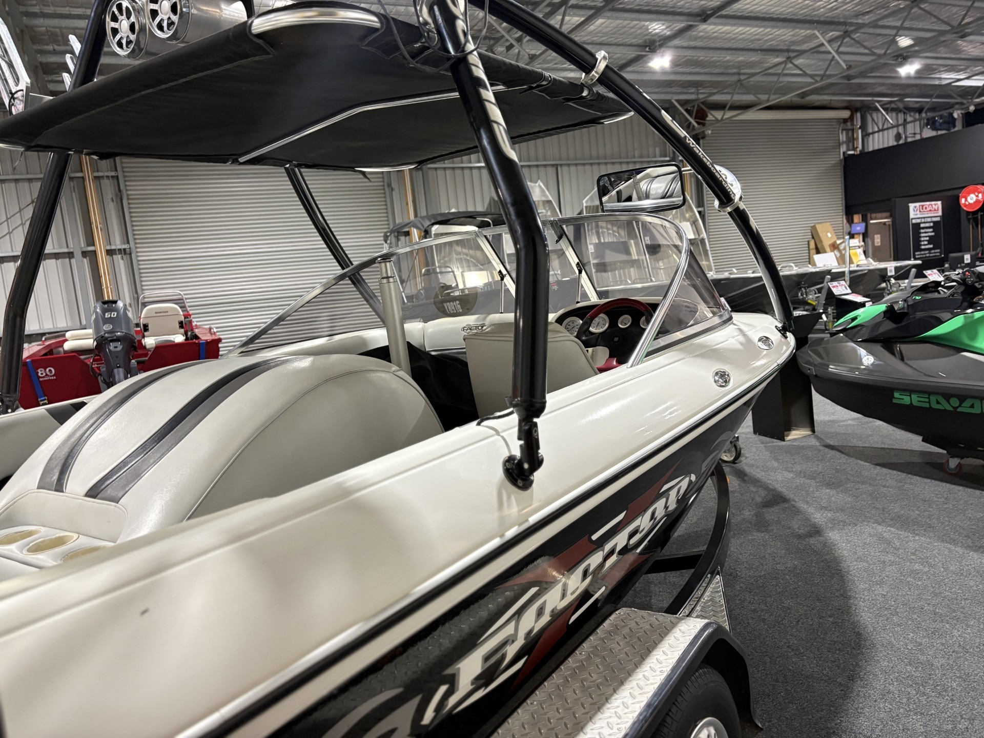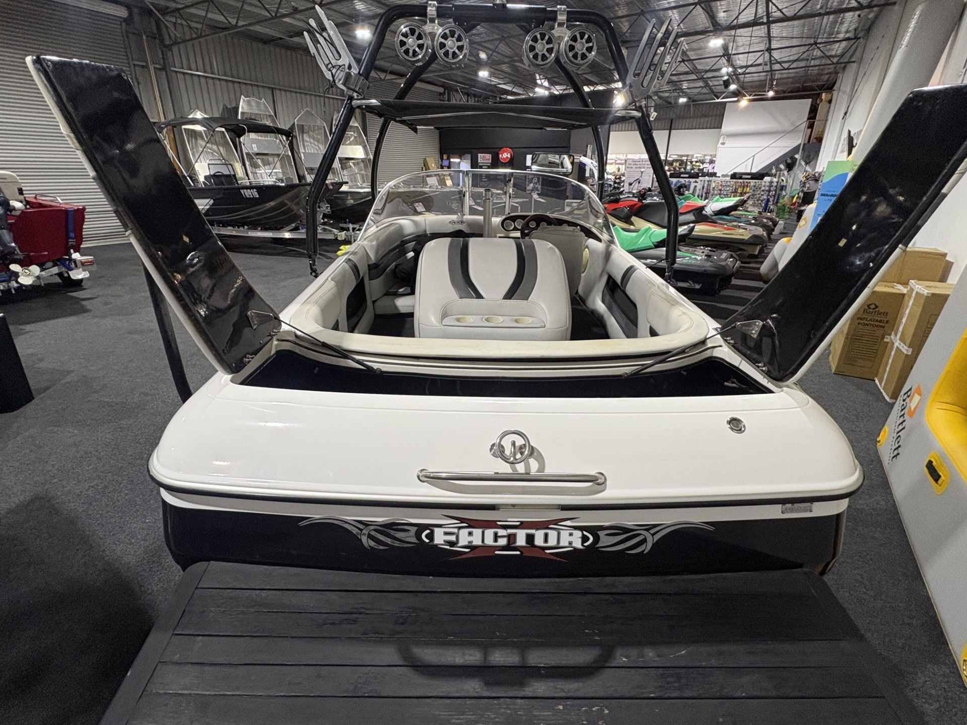 2005 EXTREME XFACTOR EASY TOW TRAILER 5.7L MERCRUISER ENGINE 164 HOURS SKI TOWER BOARD RACKS TOWER SPEAKERS STEREO SYSTEM TRAVEL COVER BIMINI NAV LIGHTS JUST BEEN DETAILED JUST BEEN SERVICED