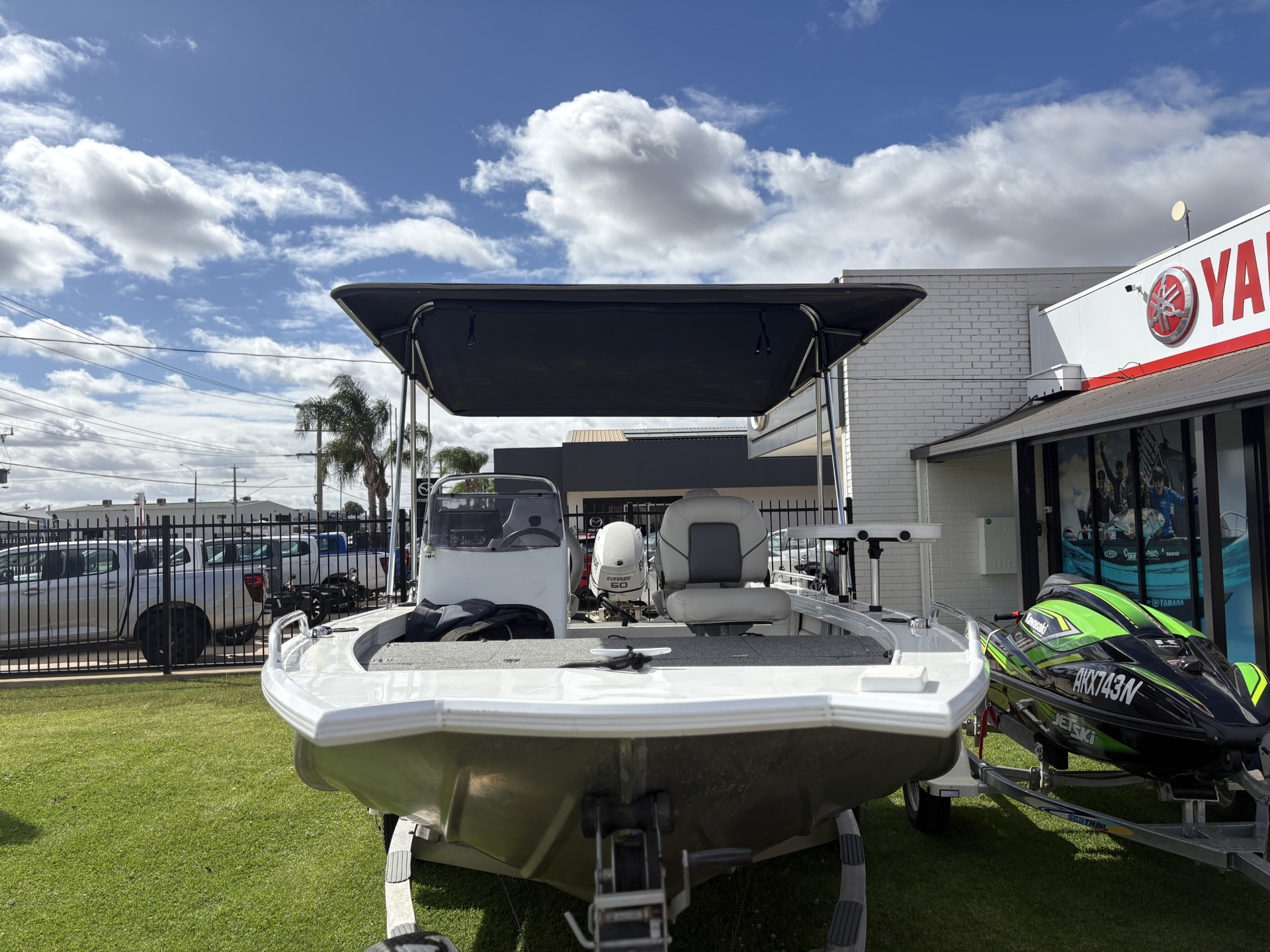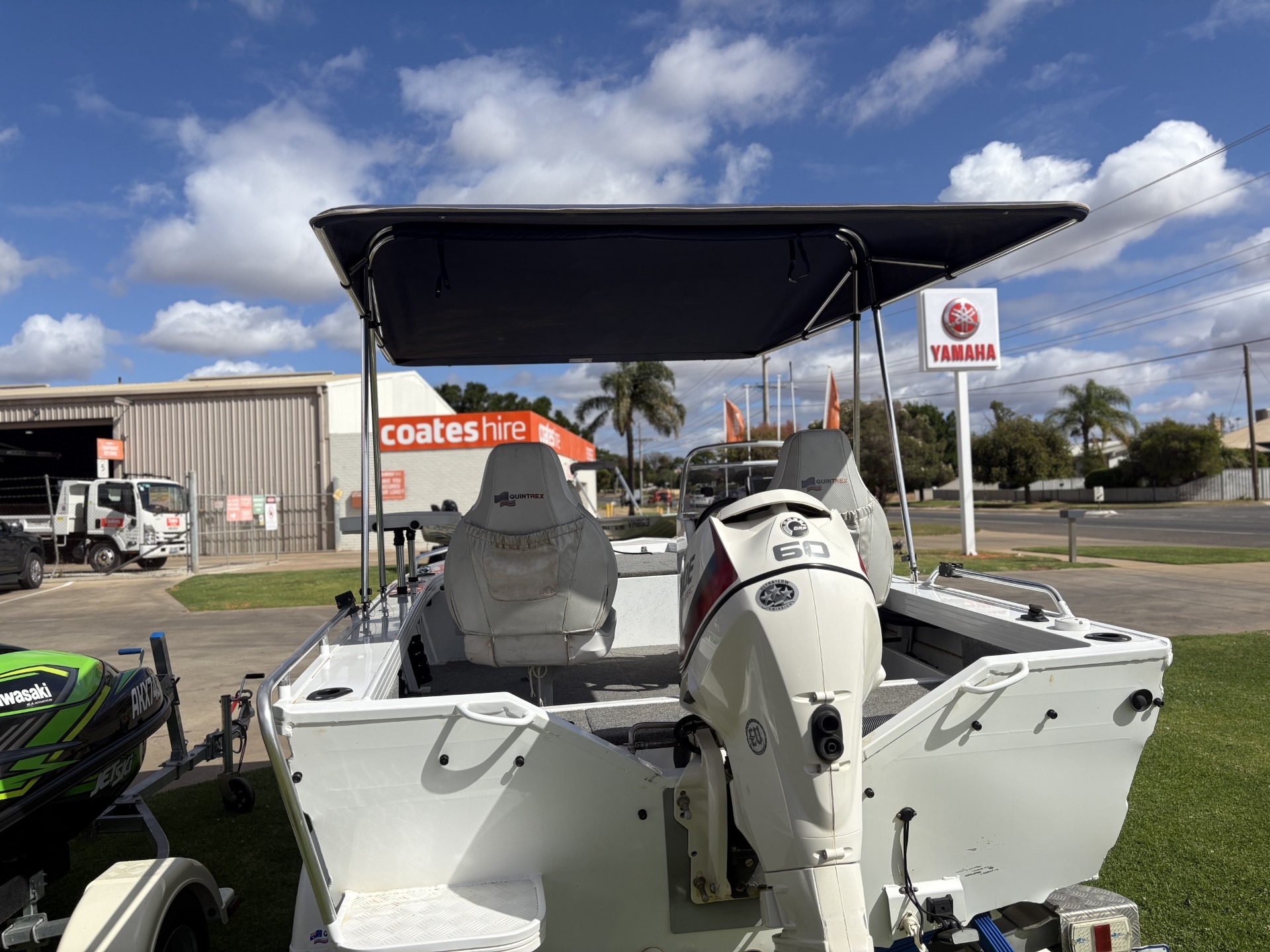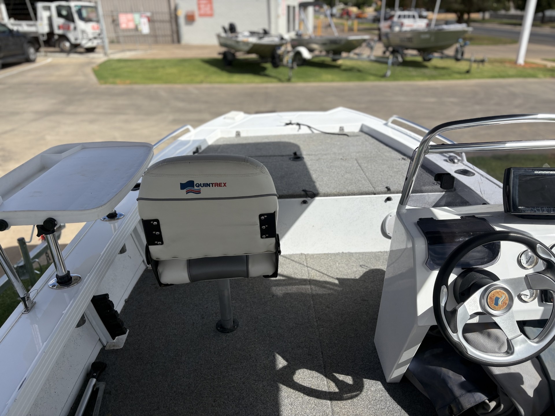2016 QUINTREX F440 2016 EVINRUDE ETEC *LOW HOURS - 110* KING FISHER BIMINI BAIT BOARD FUSION STERO HUMMINBIRD FISH FINDER S/S PROP UNDERFLOOR FUEL TANIK NAV LIGHTS 3X QUINTREX SEATS TRAVEL COVER SPARE WHEEL CARRIER & SPARE WHEEL
