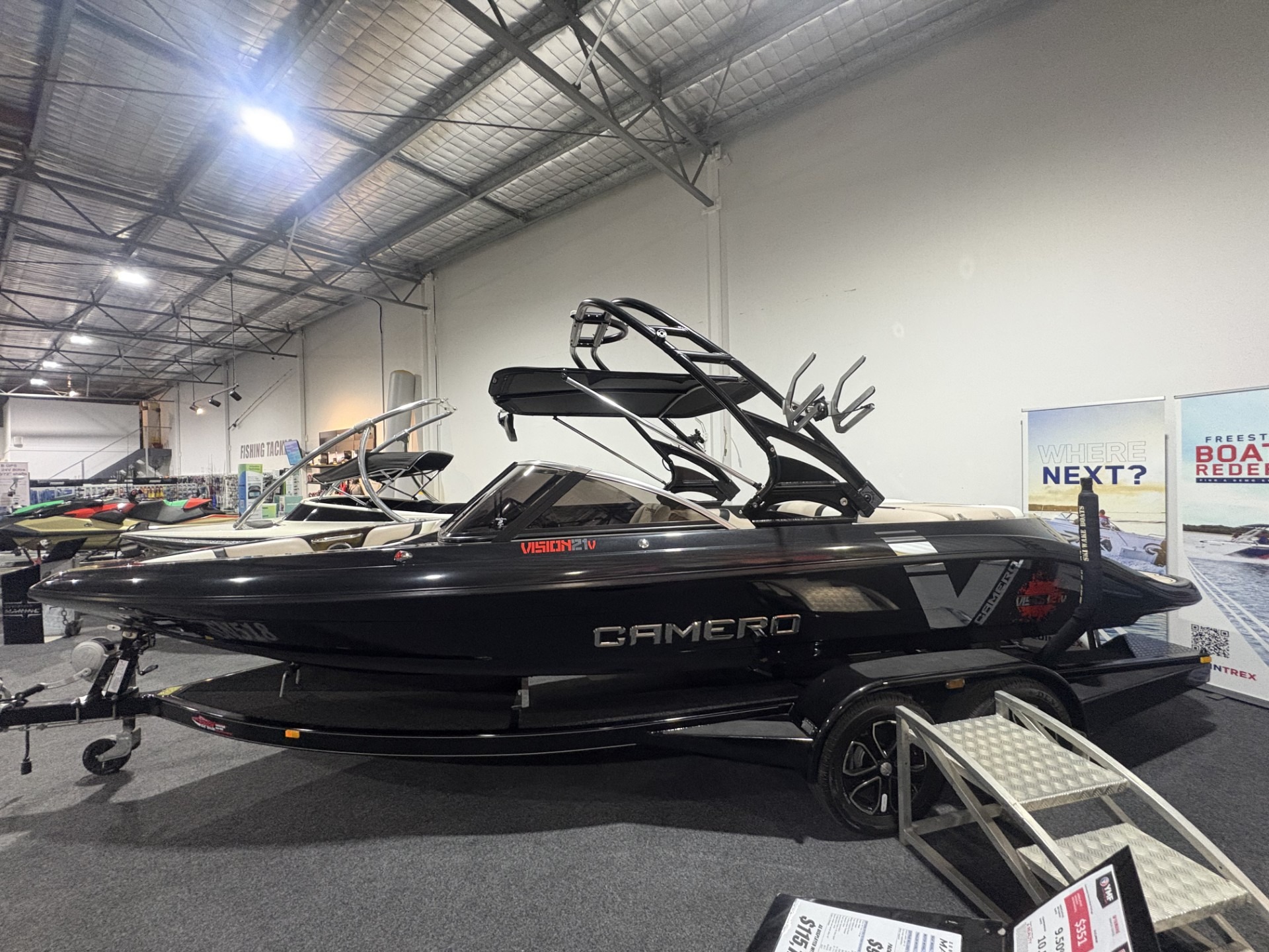 2016 CAMERO VISION 21V 343HP PCM ECALIBUR MOTOR 106.9 HOURS EASYTOW TRAILER WAKE TOWER BOARD RACKS BIMINI FUSION STERO BOW DOOR TRAVEL COVER NAV LIGHTS SAFTEY GEAR