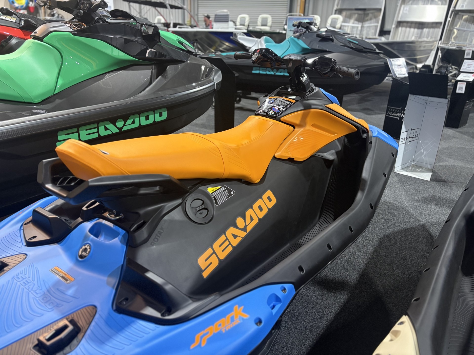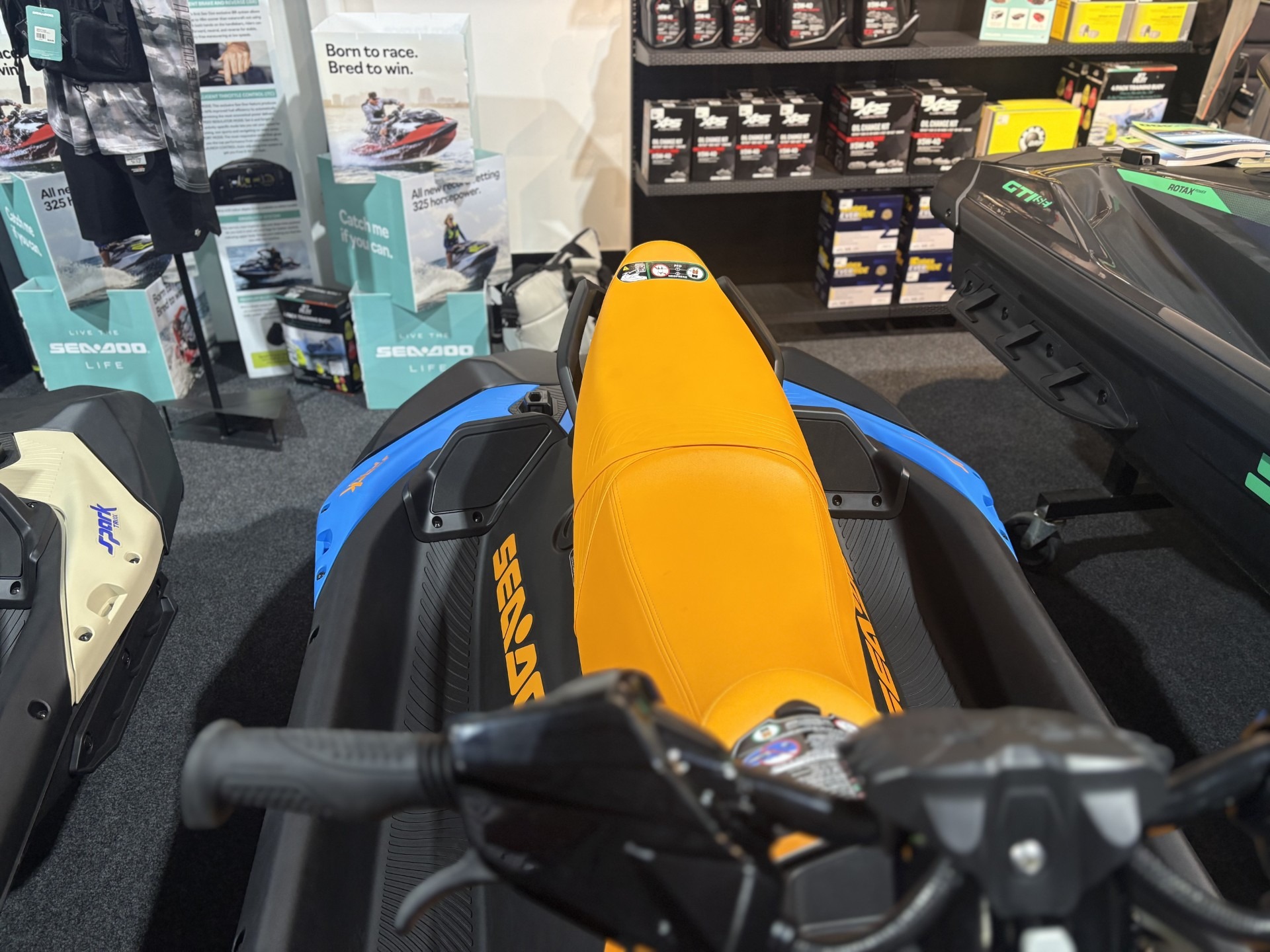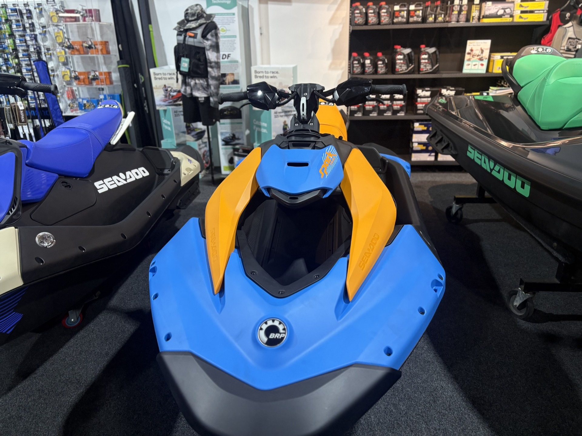 2026 SEA DOO TRIXX 3UP ROTAX 900 ACE ENGINE 90 HP BLUE / ORANGE ADJUSTABLE HANDLEBAR RISER STEP WEDGES INTELLIGENT BRAKE & REVERSE (IBR) TOW HOOK TRIXX PACKAGE JETSKI , TRAILER , REGO - $17,349